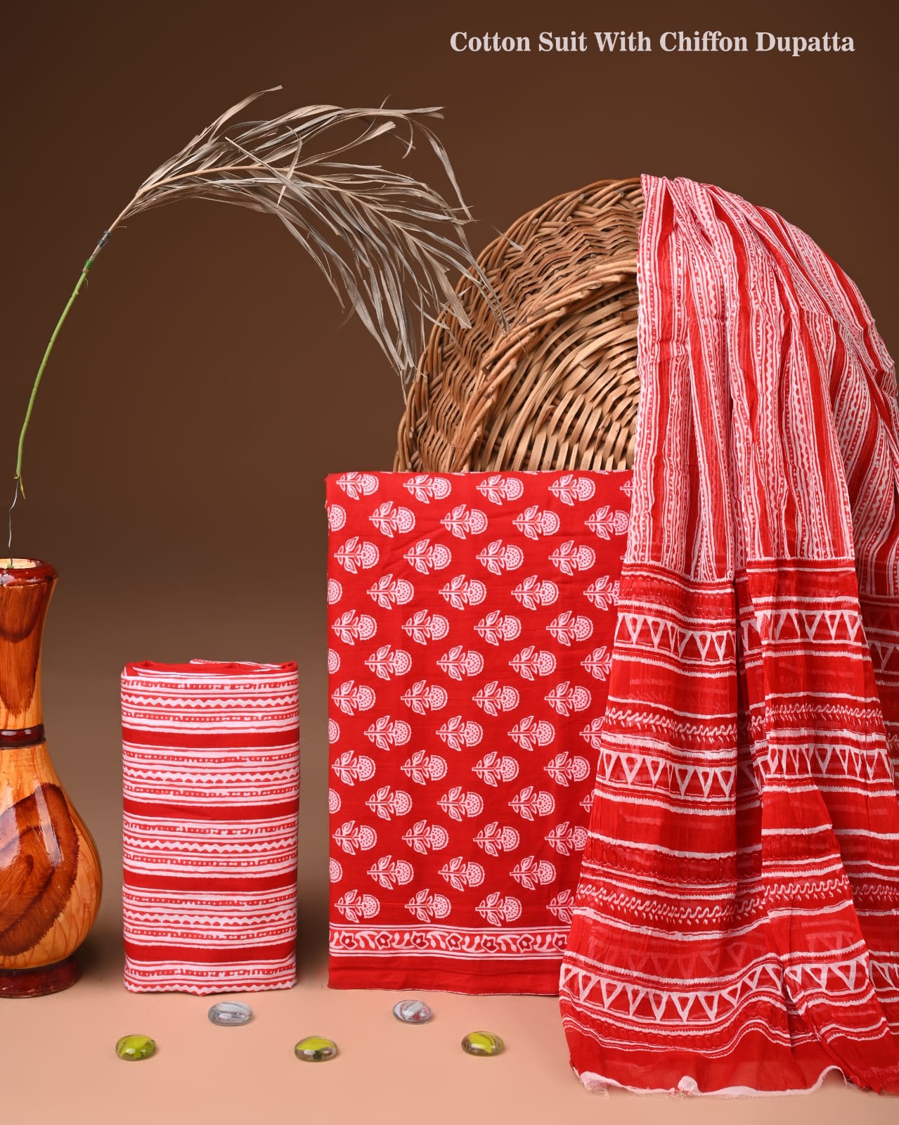 Traditional Bagru Print Cotton Suit with Chiffon Dupatta (BCTCOTCF21)