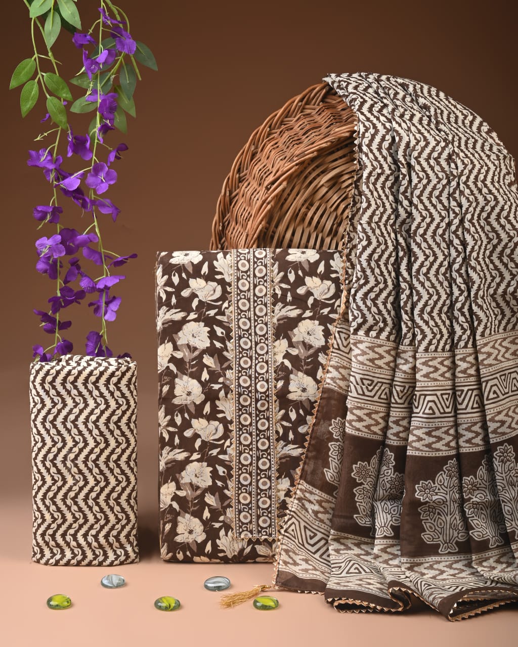 Traditional Bagru Print Cotton Suit with Chiffon Dupatta (BCTCOTCF23)
