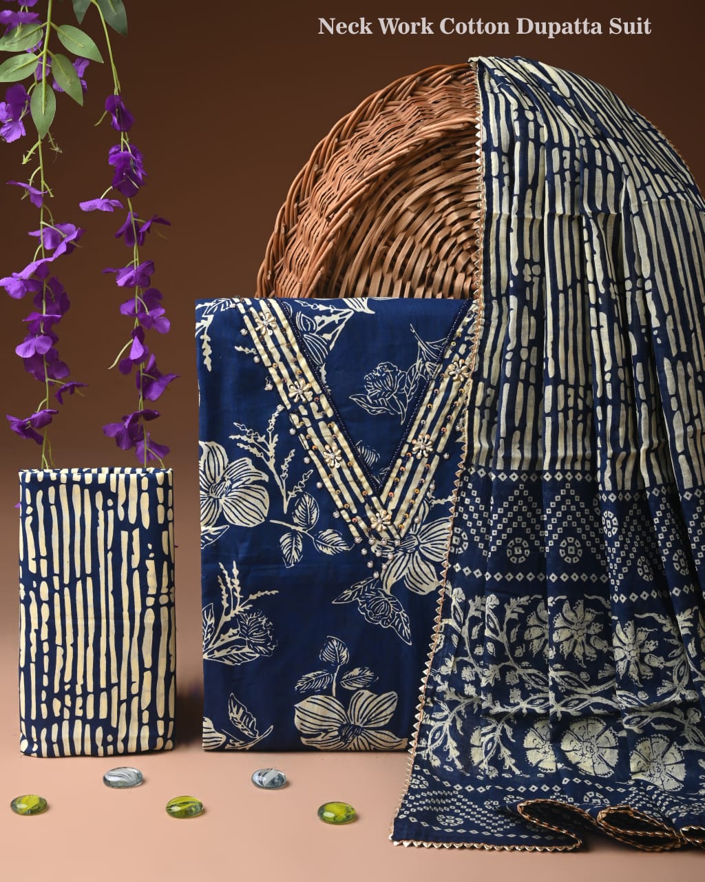 Bagru Chhipa Textiles – Handcrafted Cotton Suit Set with Gota Patti Work