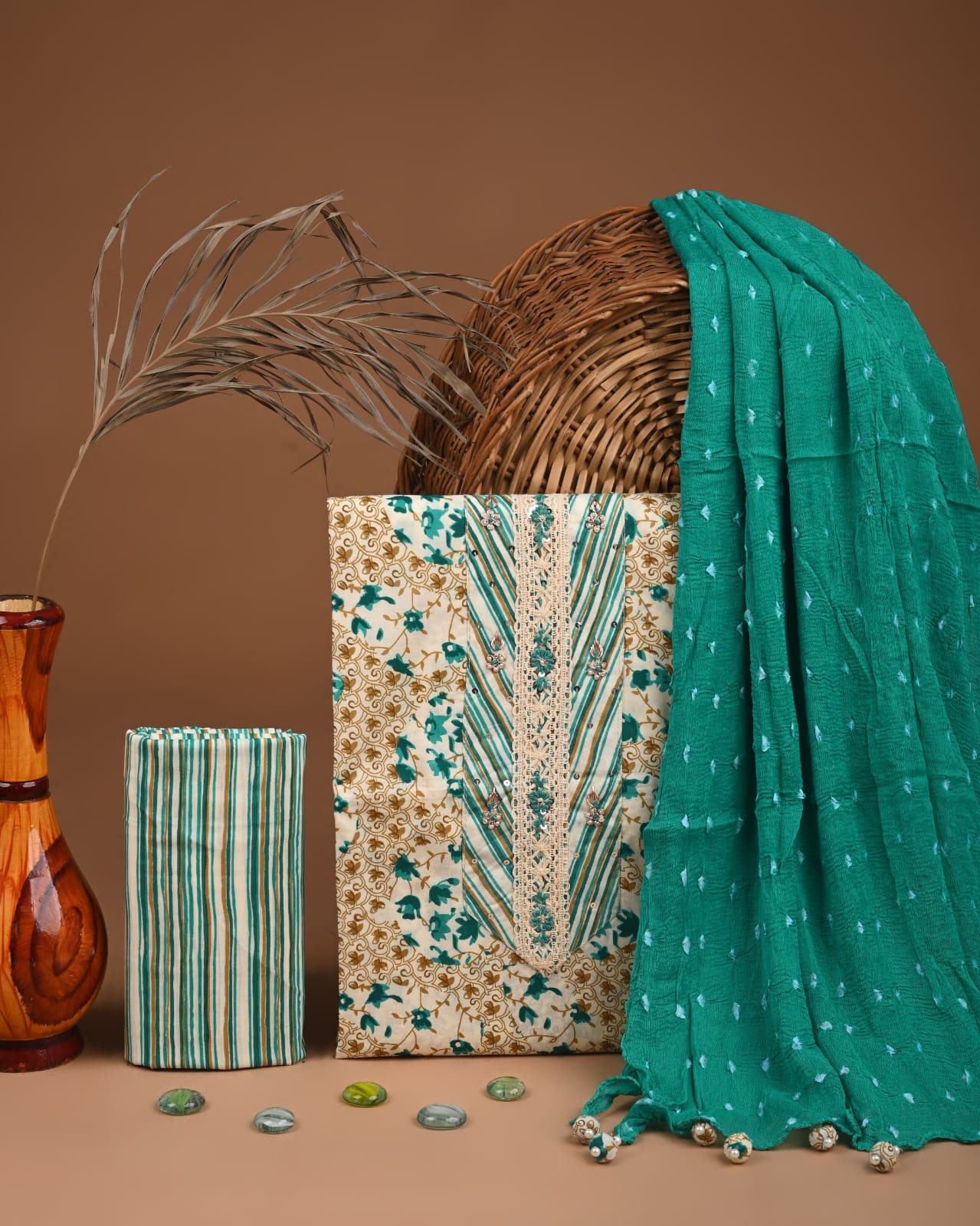 Each Bagru Chhipa Textile piece reflects the beauty of artisanal imperfection — natural variations in print and shade are a hallmark of authentic craftsmanship, ensuring that your outfit is truly one-of-a-kind.