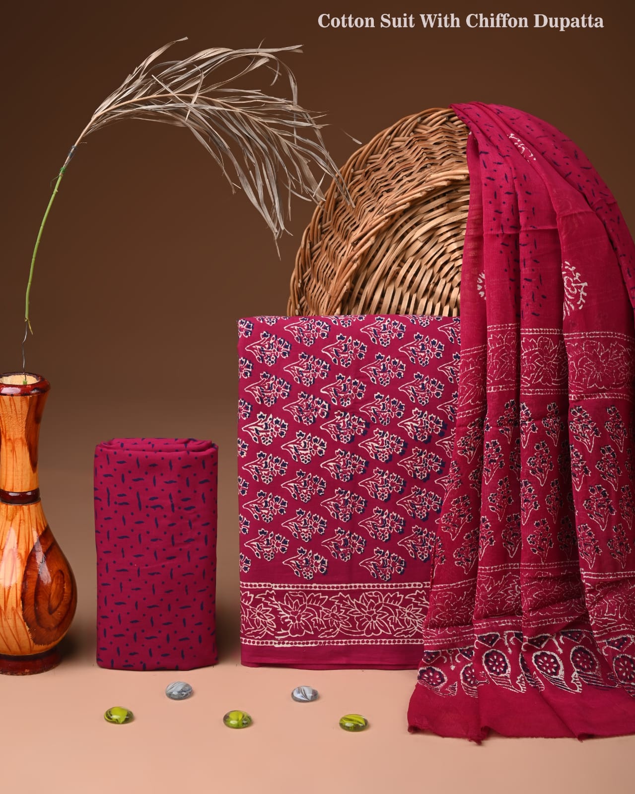 Traditional Bagru Print Cotton Suit with Chiffon Dupatta (BCTCOTCF21)
