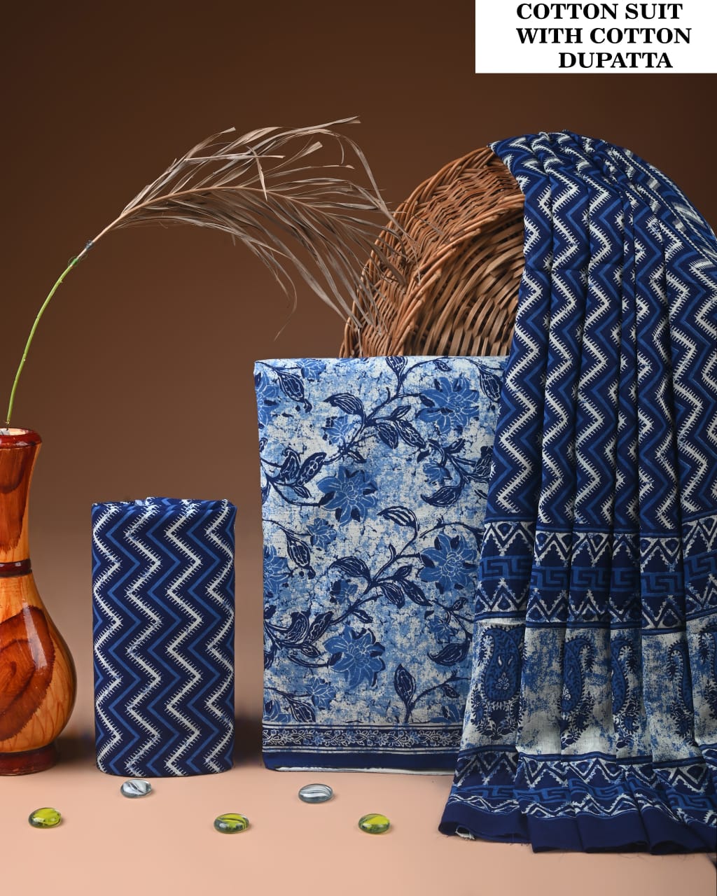 Traditional Bagru Print Cotton Suit with Chiffon Dupatta (BCTCOTCF23)