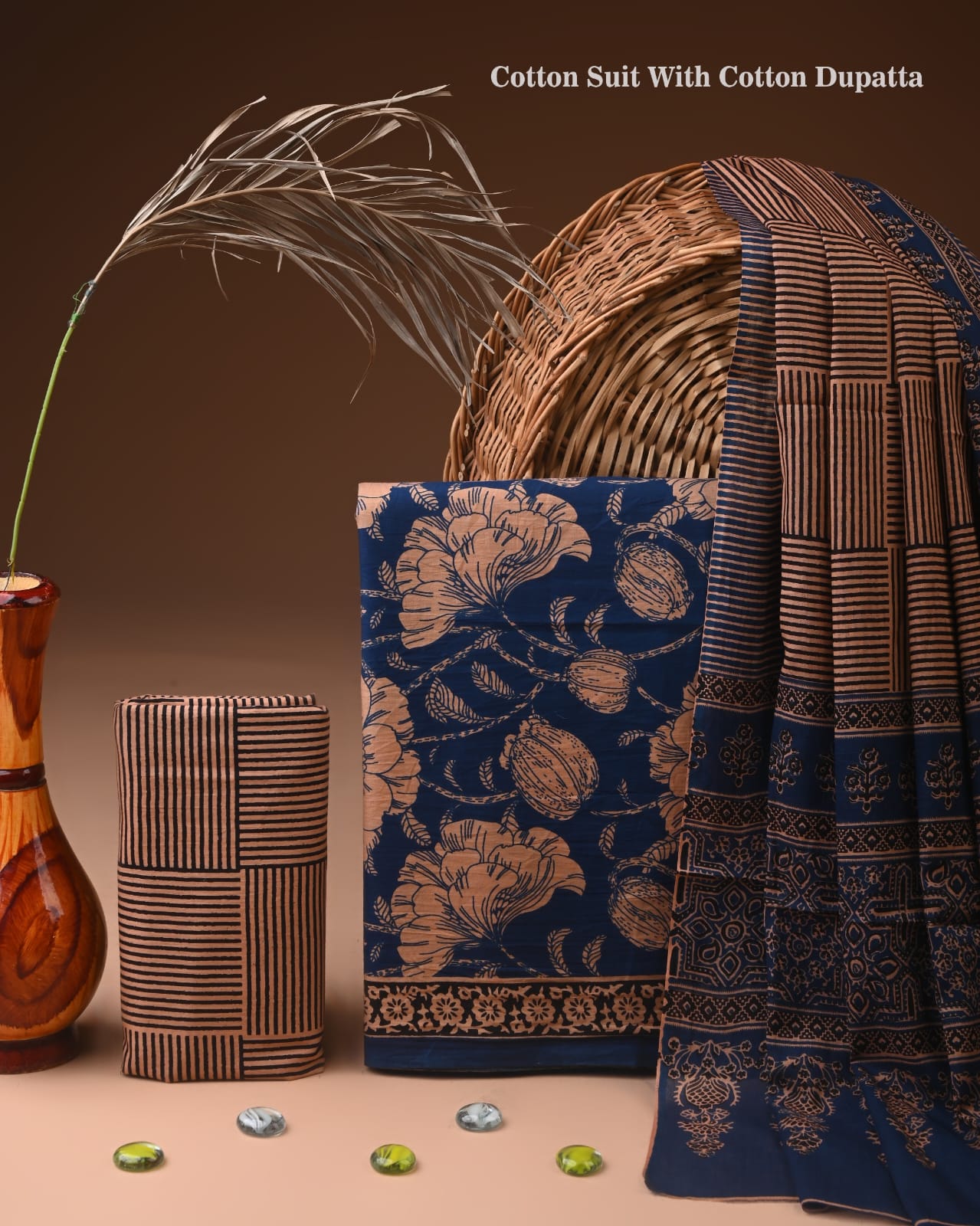 Traditional Bagru Print Cotton Suit with Chiffon Dupatta (BCTCOTCF23)